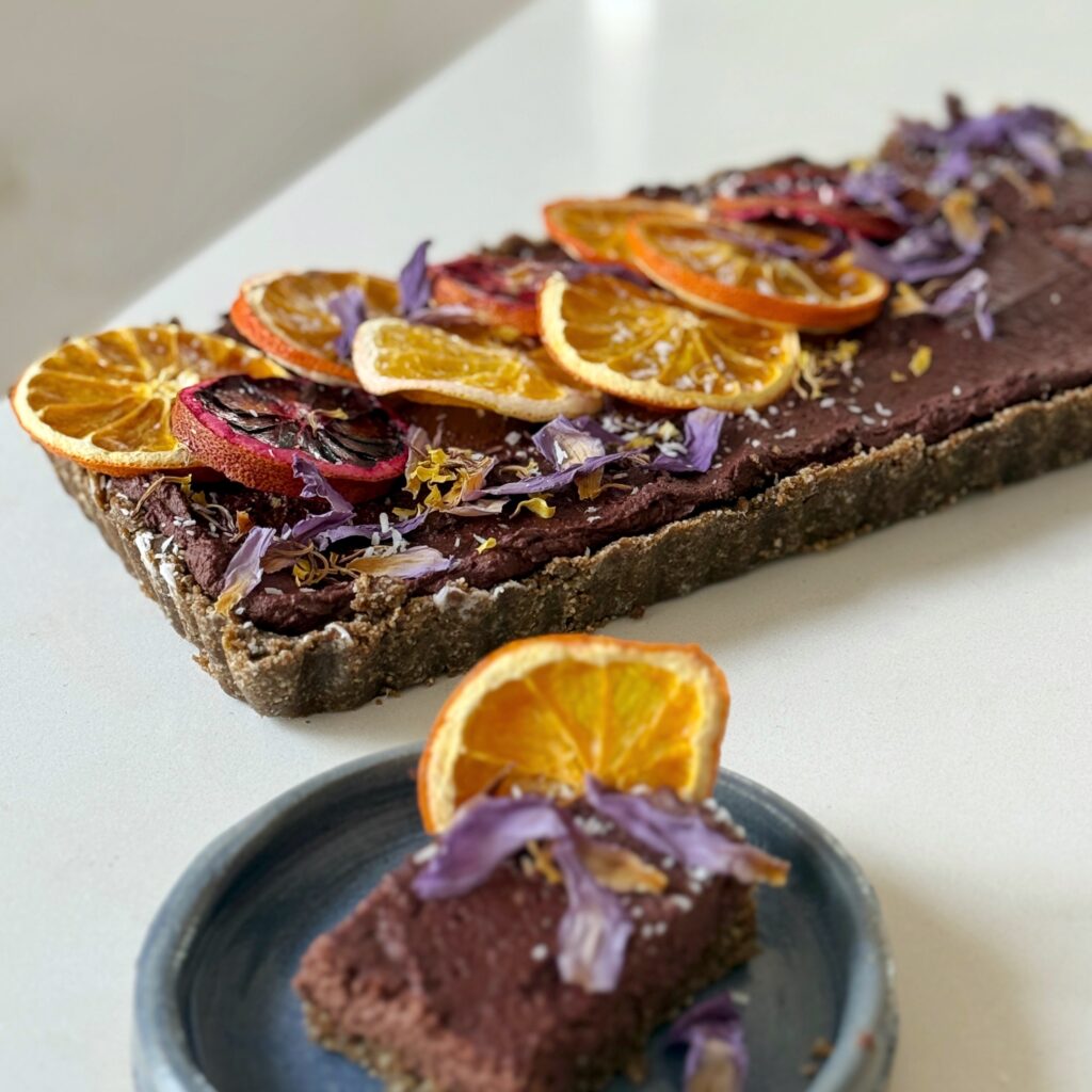 Raw Vegan Orange & Chocolate Ganache Tart